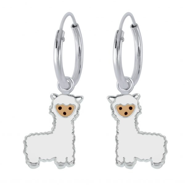 Silver Alpaca Charm Hoop Earrings