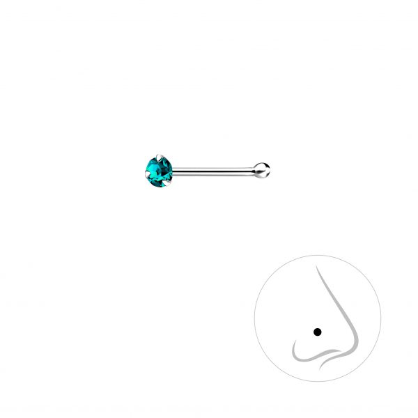 2mm Round Crystal Silver Nose Stud With Ball