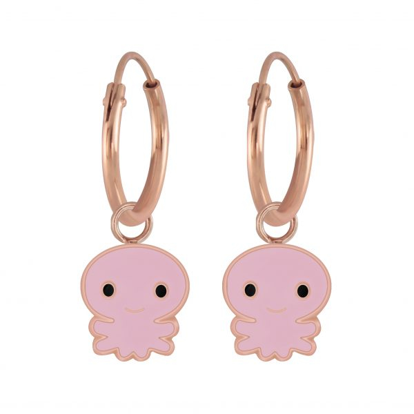 Silver Octopus Charm Hoop Earrings