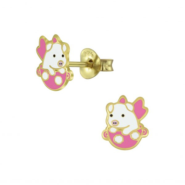 Silver Flying Pig Stud Earrings
