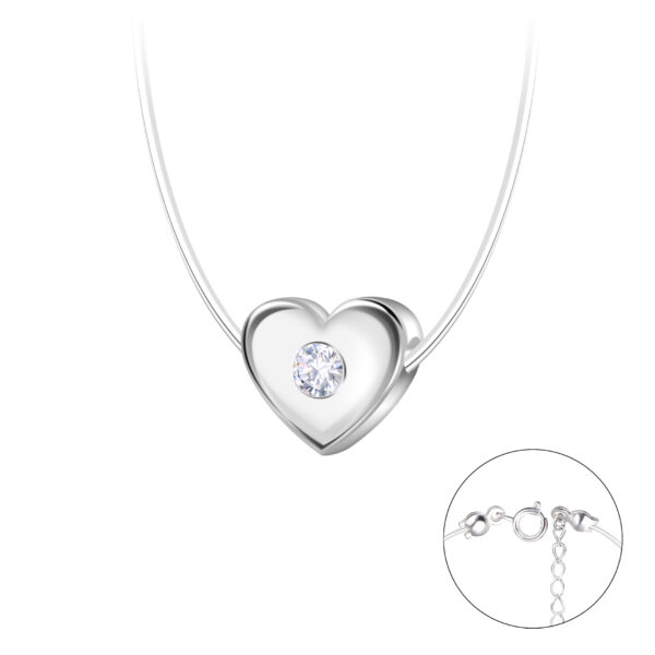 Silver Heart Beaded Invisible Necklace
