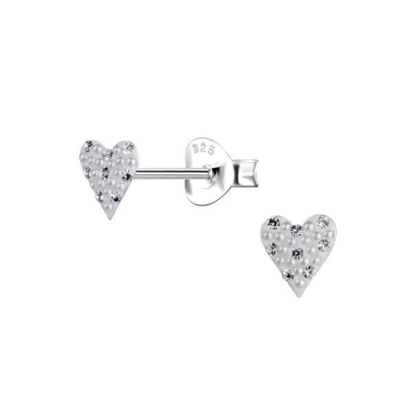 Silver Heart Stud Earrings with Pearl and Crystal