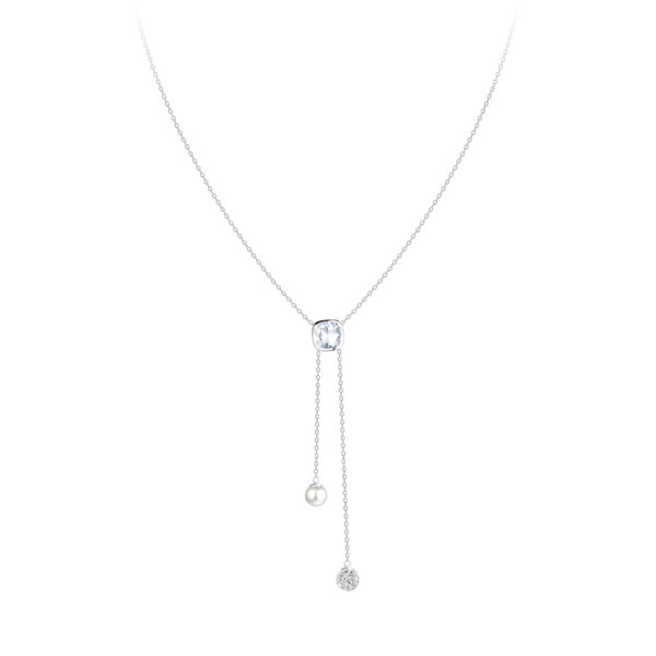 Silver Cushion Y Necklace with 6mm Pearl and Crystal Ball