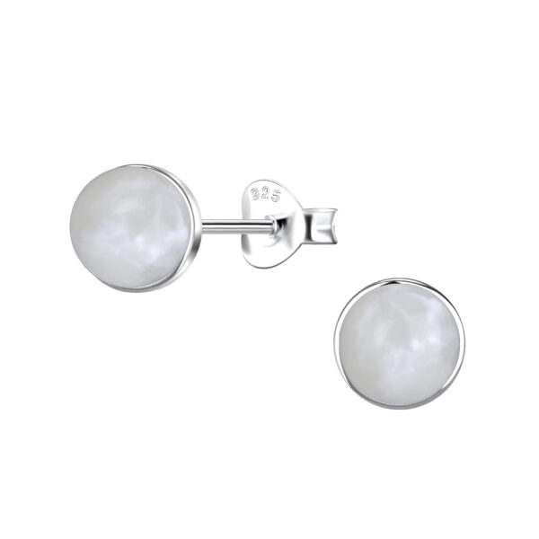 6mm Round Imitation Stone Silver Stud Earrings