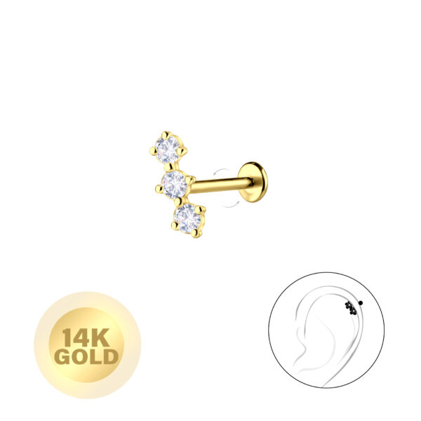 14K Solid Gold - Geometric Labret with 3mm Disc
