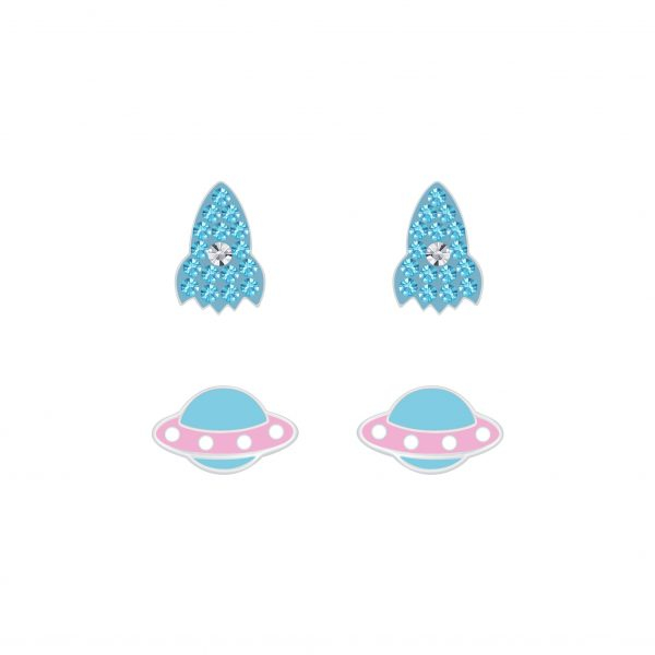 Silver Space Stud Earrings Set