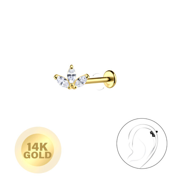 14K Solid Gold - Geometric Labret with 3mm Disc
