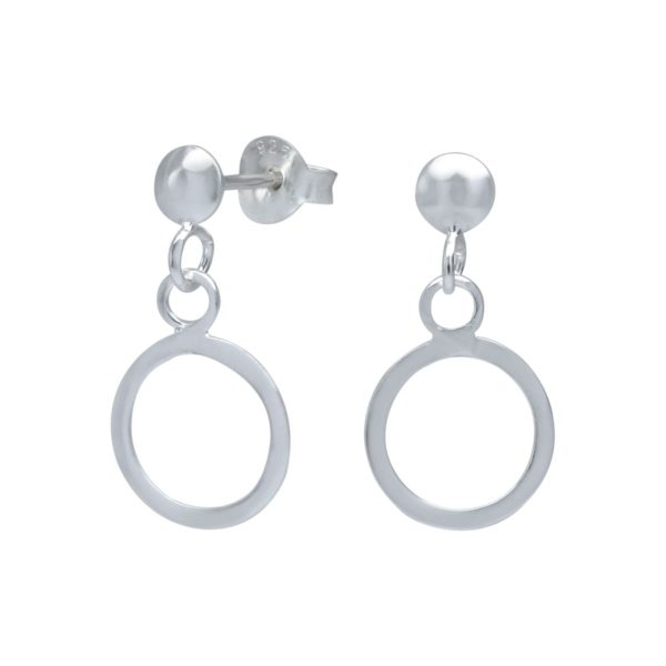 Silver Stud Earrings with Hanging Circle