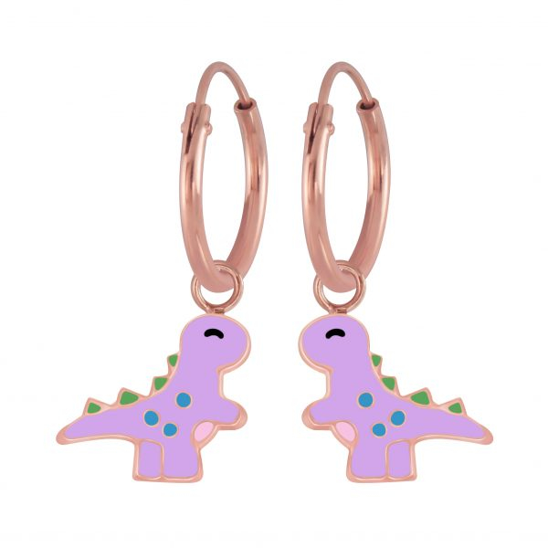 Silver Dinosaur Charm Hoop Earrings
