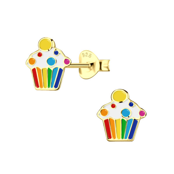 Silver Cupcake Stud Earrings