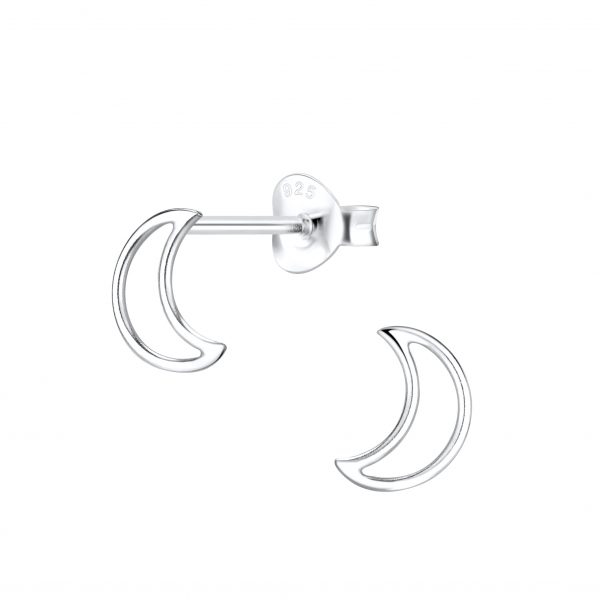 Silver Half Moon Stud Earrings