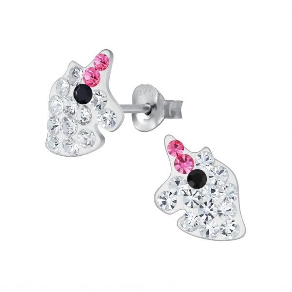 Silver Unicorn Crystal Stud Earrings