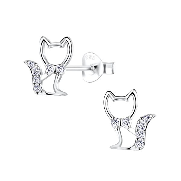 Silver Cat Stud Earrings