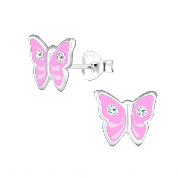 Silver Crystal Butterfly Stud Earrings