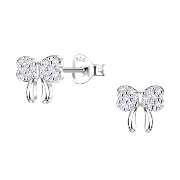 Silver Bow Stud Earrings