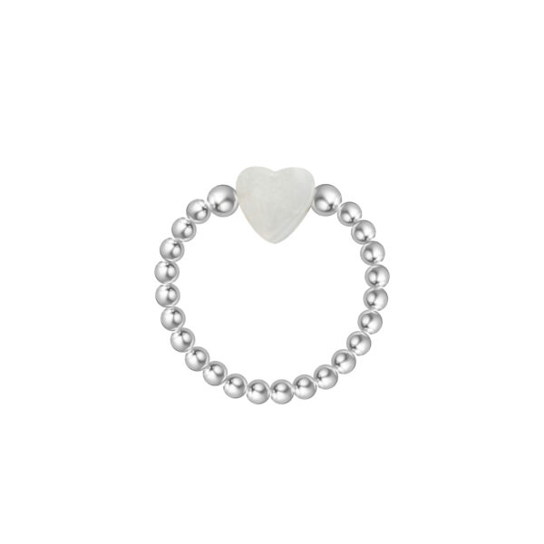 Silver Ball and Heart MOP Bead Elastic Ring