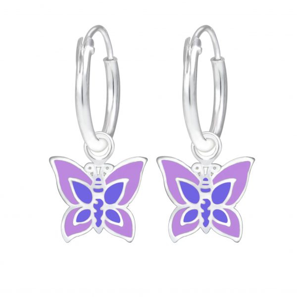 Silver Butterfly Charm Hoop Earrings
