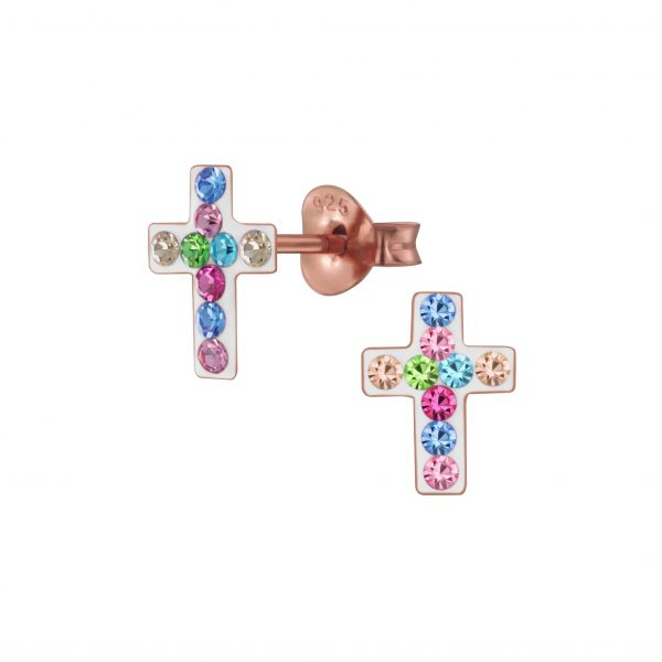 Silver Cross Crystal Stud Earrings