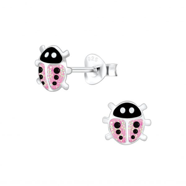 Silver Ladybug Stud Earrings