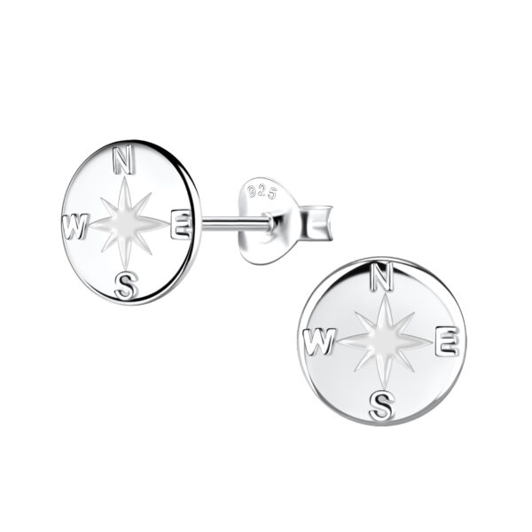 Silver Compass Stud Earrings