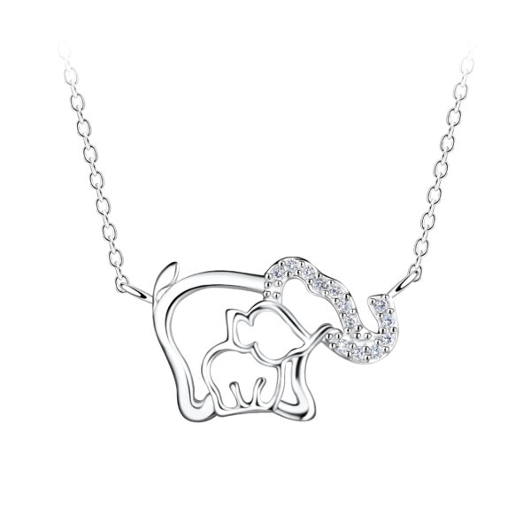 Silver Mom and Baby Elephant Necklace