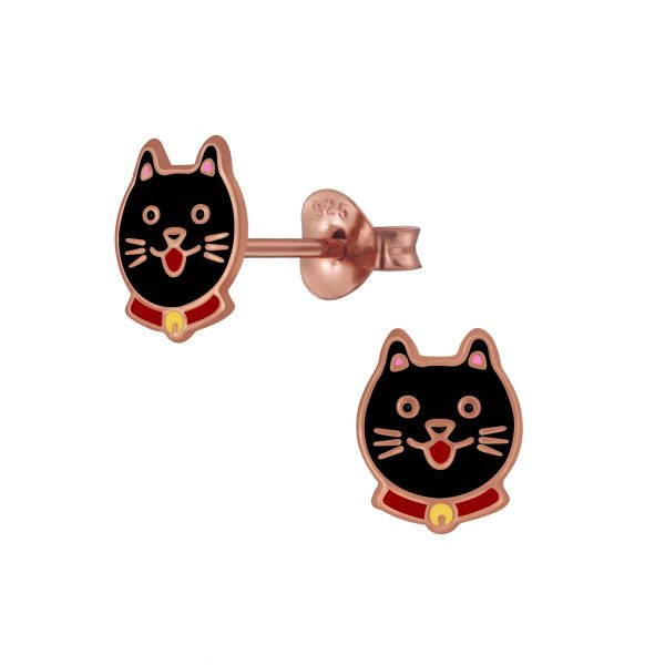 Silver Cat Stud Earrings