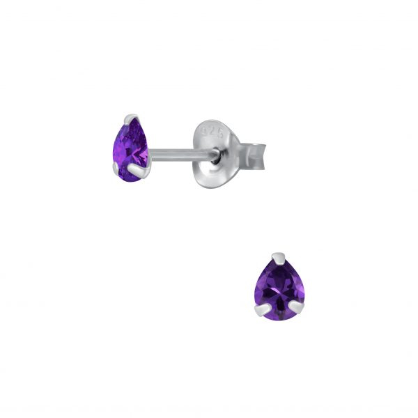 3X4mm Pear Cubic Zirconia Silver Stud Earrings