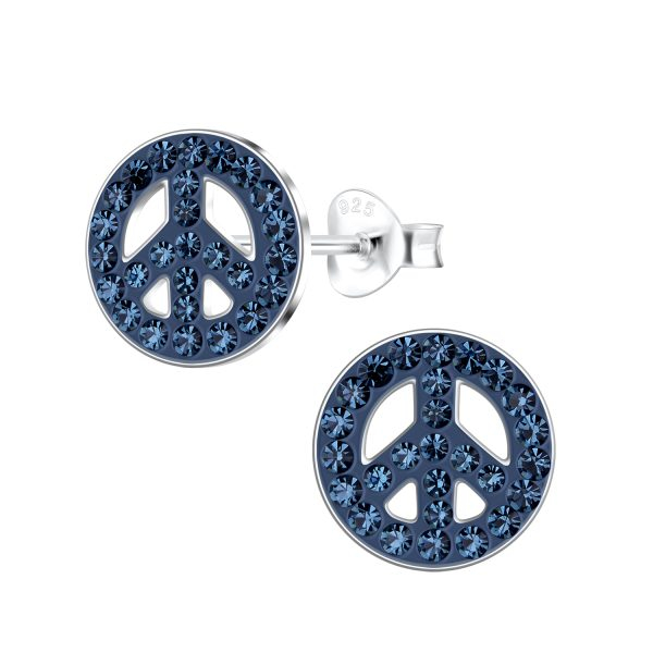 Silver Peace Sign Crystal Stud Earrings