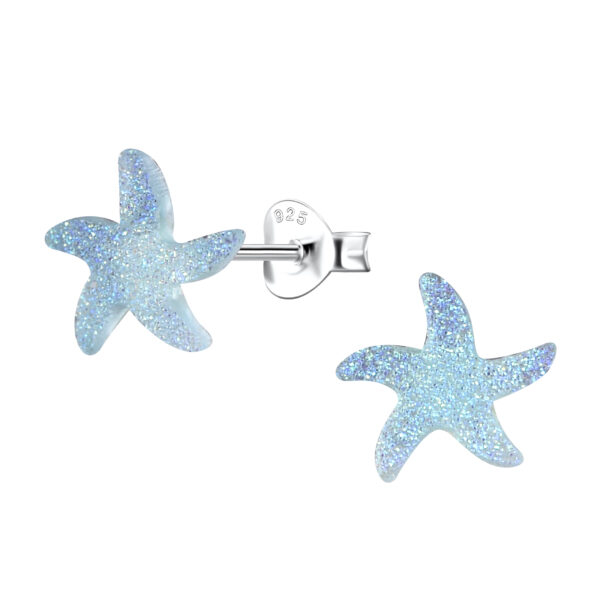 Silver Stud Earrings with Resin Starfish