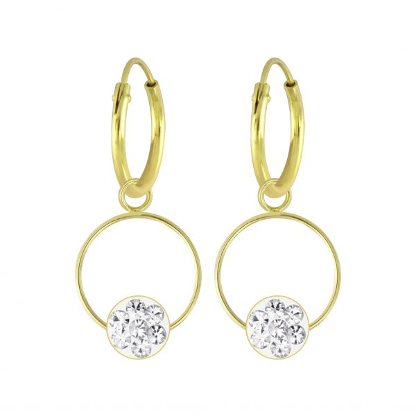 Silver Round Crystal Charm Hoop Earrings