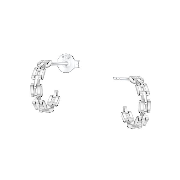 Silver Chain Link Half Hoop Stud Earrings