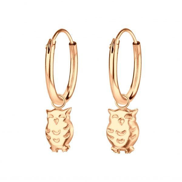 Silver Owl Charm Hoop Earrings