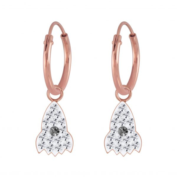 Silver Crystal Rocket Charm Hoop Earrings