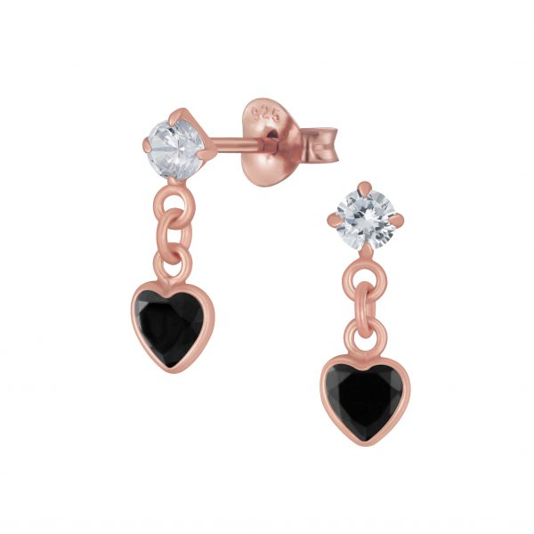 Silver Heart Cubic Zirconia Drop Stud Earrings