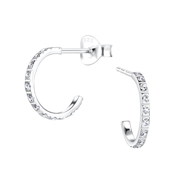 Silver Half Hoop Stud Earrings