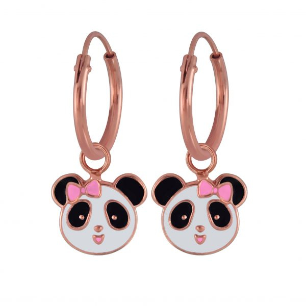 Silver Panda Charm Hoop Earrings
