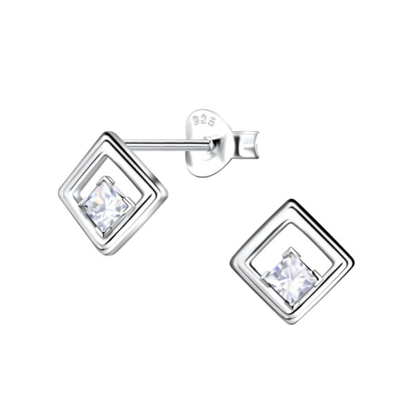 Silver Square Stud Earrings