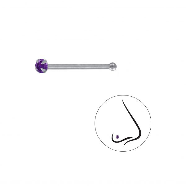 2mm Round Cubic Zirconia Silver Nose Stud With Ball