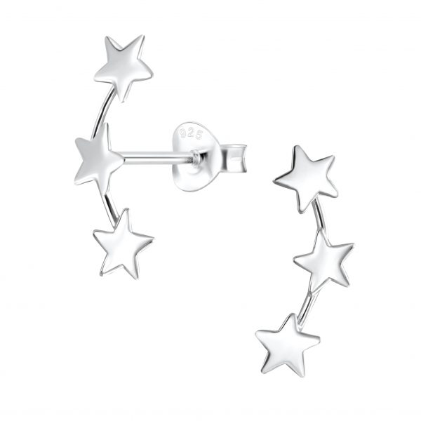 Silver Triple Star Stud Earrings