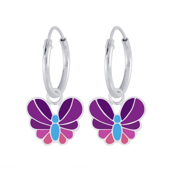 Silver Butterfly Charm Hoop Earrings