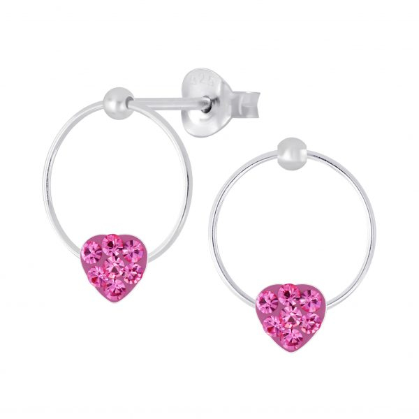 Silver Crystal Heart Stud Earrings