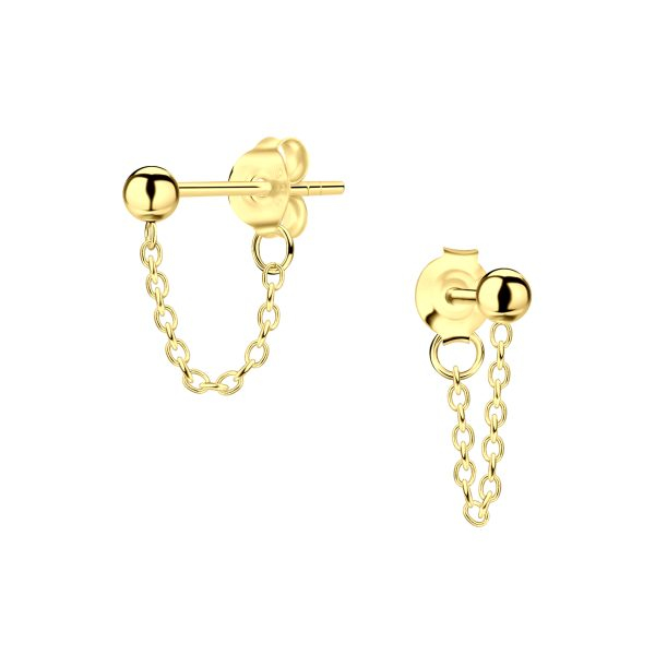 3mm Ball Silver Stud Earrings with Chain