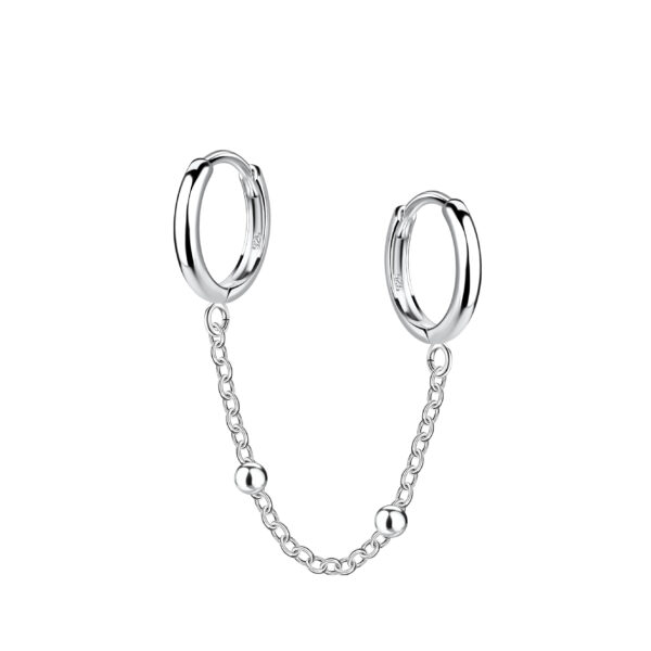 Silver Double Huggie Earrings with Chain
