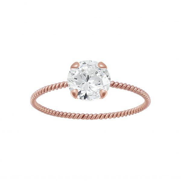 6mm Round Cubic Zirconia Silver Twisted Band Solitaire Ring