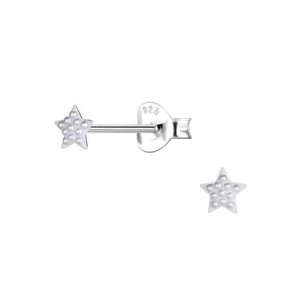 Silver Star Stud Earrings with Pearl