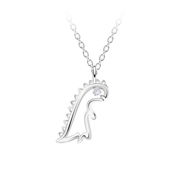 Silver Brachiosaurus Dinosaur Outline Necklace