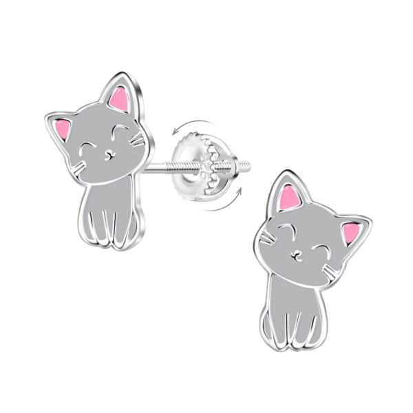 Silver Cat Screw Back Earrings