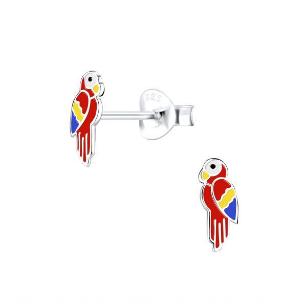 Silver Parrot Stud Earrings