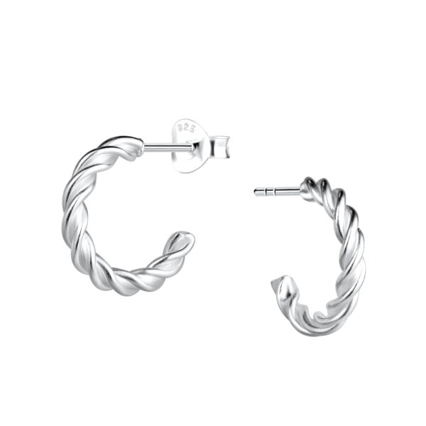 Silver Twisted Half Hoop Stud Earrings