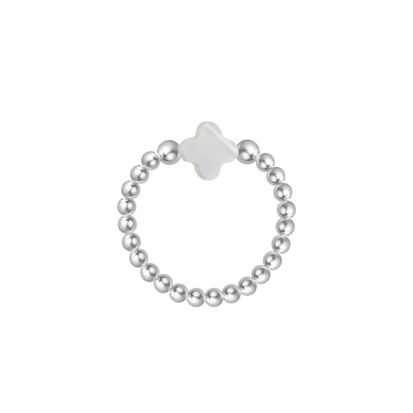 Silver Ball and Clover MOP Bead Elastic Ring